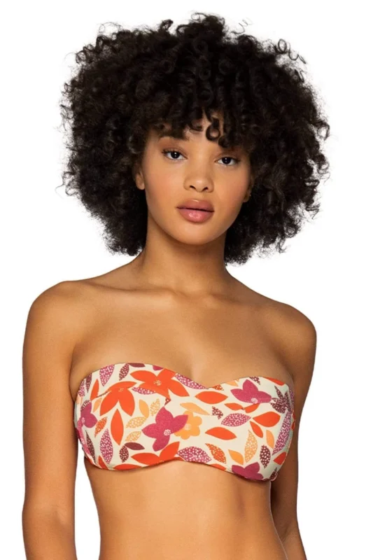 Biquíni Top em Microfibra com Estampa Folhagem e Amarrações